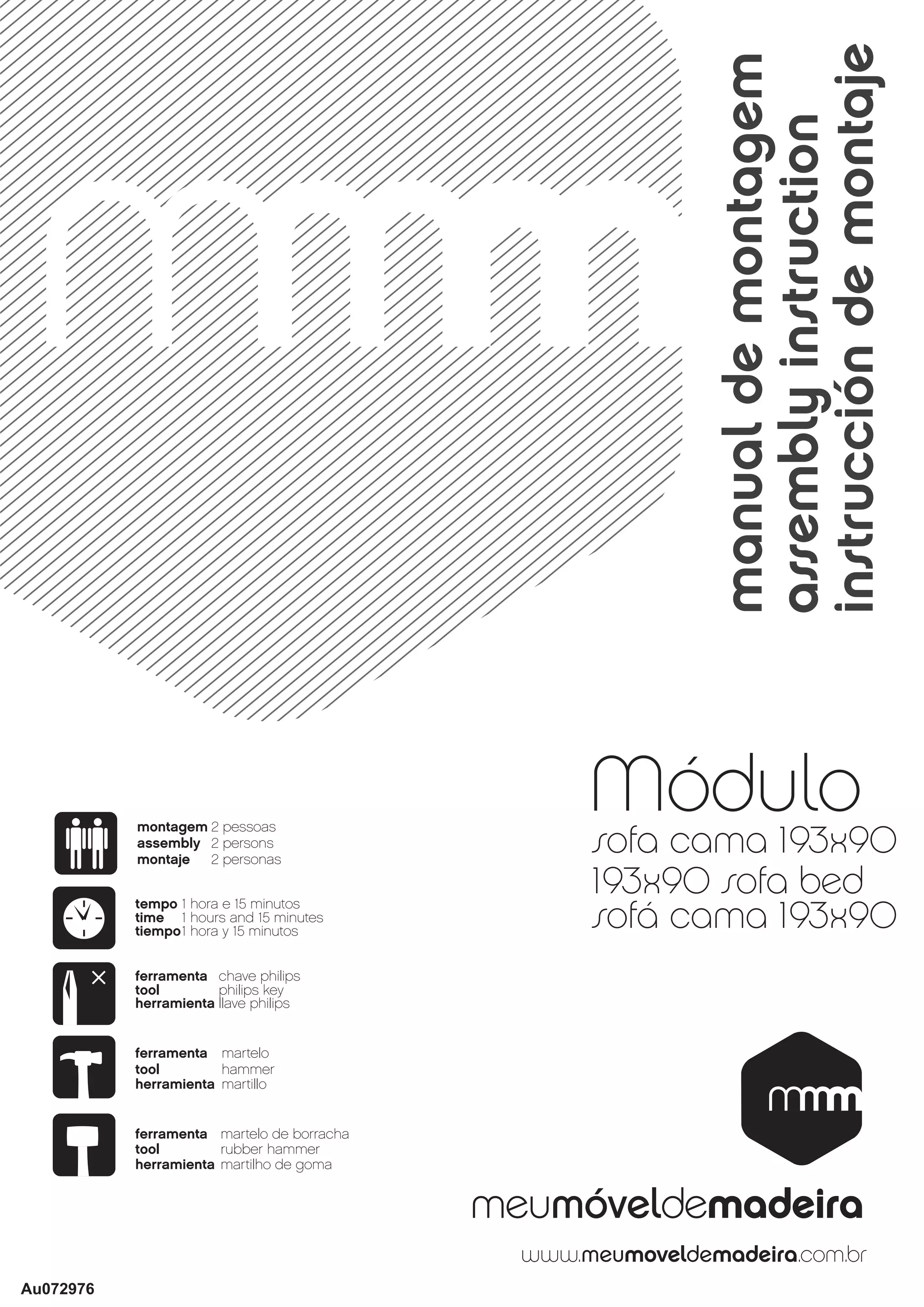 O documento fornece instruções de montagem para um sofá-cama de 193x90cm, que requer 2 pessoas e aproximadamente 1 hora e 15 minutos para montar. Ele lista as peças, ferramentas necessárias e instruções passo a passo detalhadas para montar o sofá-cama.