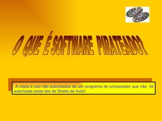 Software pirata é a cópia e uso não autorizados de programas de computador violando as leis de direitos autorais. Há vários tipos como duplicar e vender cópias, baixar de sites, alugar software temporariamente. É melhor comprar de revendedores autorizados com fatura para garantia e suporte legal, enquanto software pirata traz riscos sem os benefícios do original.
