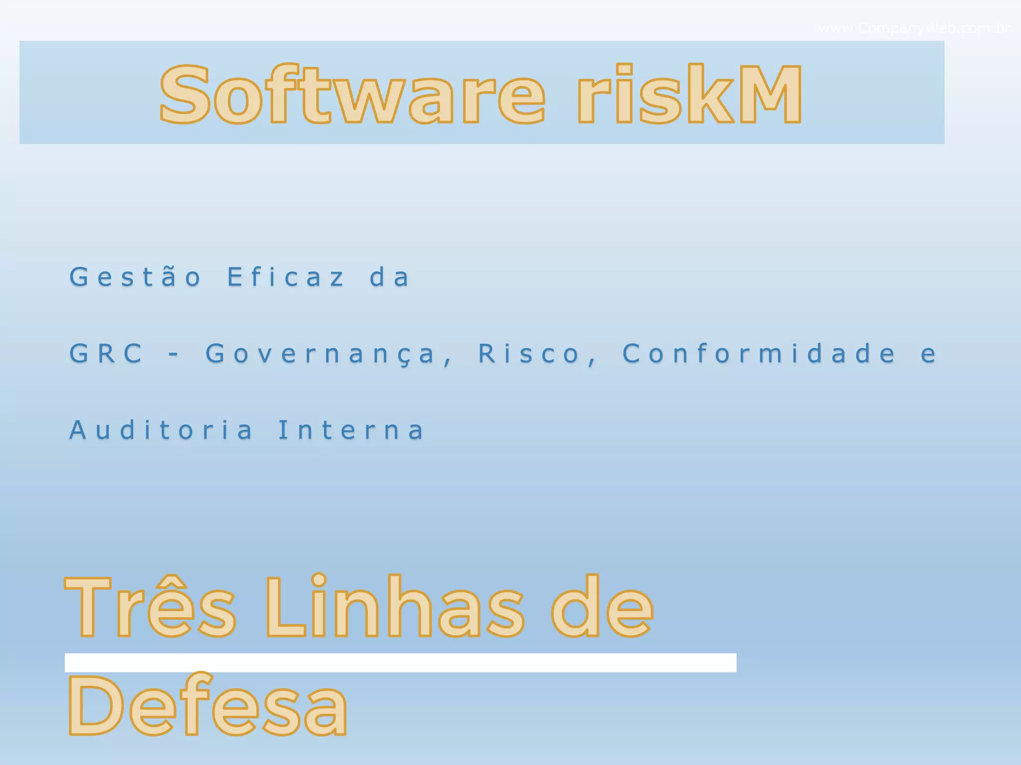 O documento descreve os serviços de um consultor especializado em gestão de riscos, conformidade e auditoria interna. Ele oferece mais de 20 anos de experiência implementando modelos como COSO e ISO 31000, além de ter trabalhado em diversas empresas públicas e privadas. O documento também apresenta o método do consultor para integrar as três linhas de defesa em uma única plataforma tecnológica, permitindo a gestão colaborativa dos riscos e conformidade.