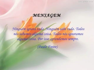 O documento discute softwares educacionais gratuitos, especificamente um jogo chamado "Identificando Vogais" que ajuda alunos a associar figuras com letras através de estímulos visuais e pontuação. O texto também analisa como o software pode ser usado em conjunto com teorias pedagógicas para estimular interação com a tecnologia e aprimorar o conhecimento dos alunos.