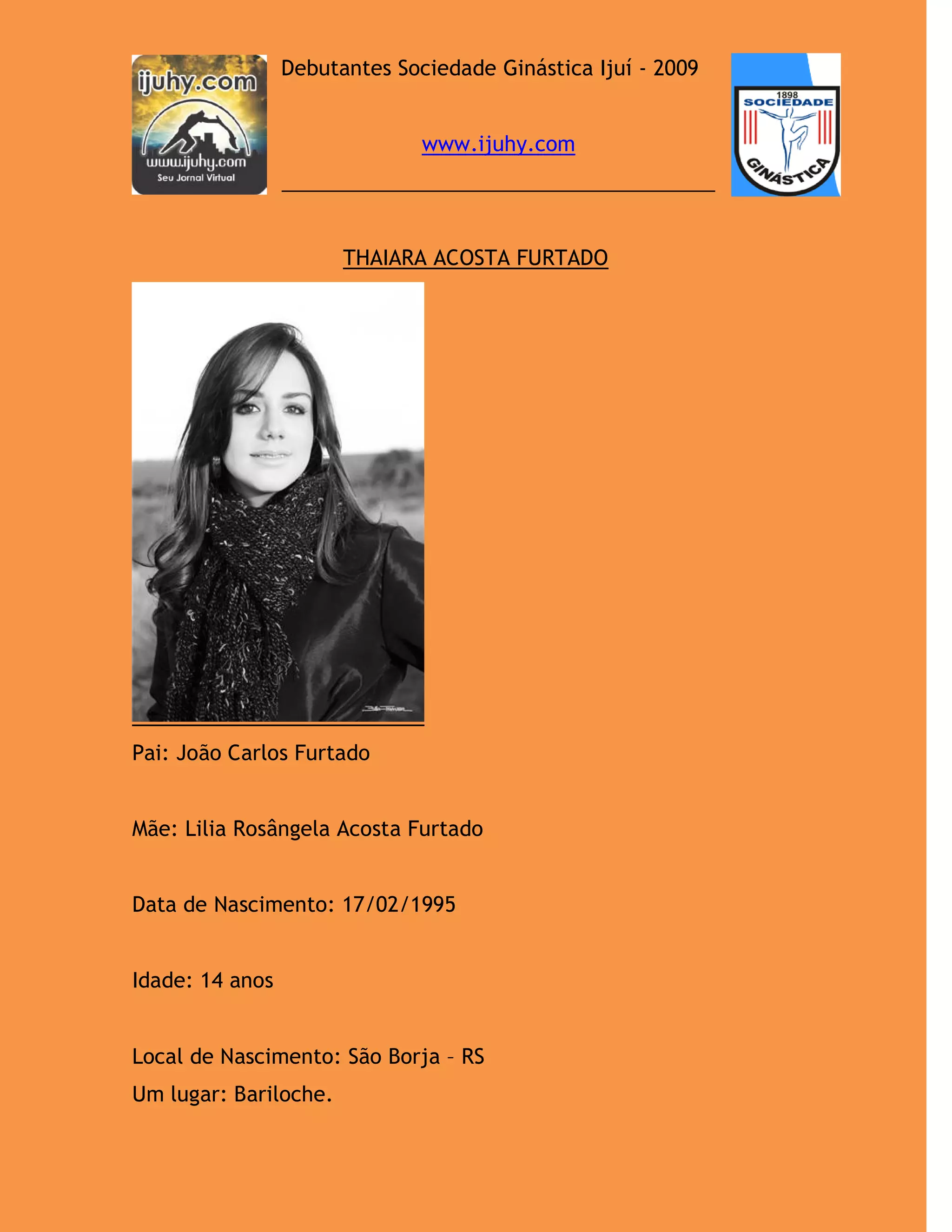 Este documento apresenta perfis de jovens debutantes da Sociedade Ginástica Ijuí em 2009. Cada perfil fornece informações como nome, data de nascimento, sonhos, conquistas, defeitos e qualidades de cada debutante.