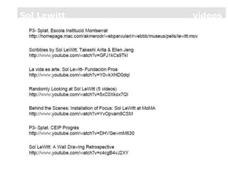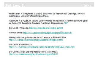 Sol LeWitt (1928-2007) foi um artista conceitual estadunidense. Nasceu em Connecticut e serviu no exército durante a Guerra da Coréia. Sua arte minimalista explorou estruturas cúbicas e variações lógicas de formas geométricas em desenhos murais, instalações e esculturas. Seu trabalho performático focou em conceitos constantes ao invés de expressão pessoal.