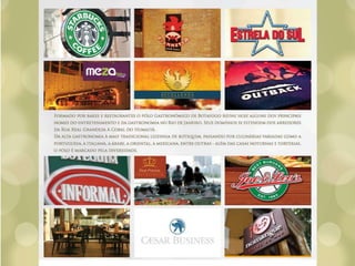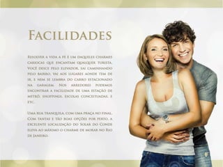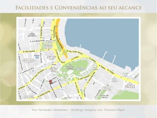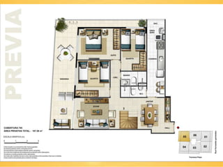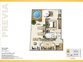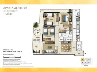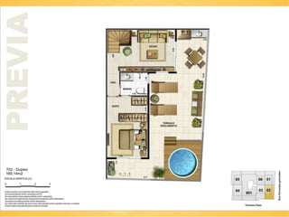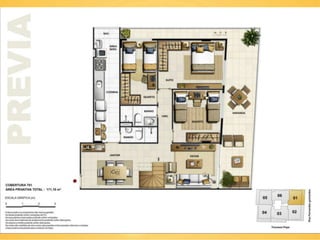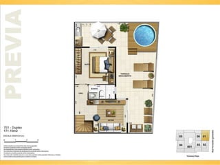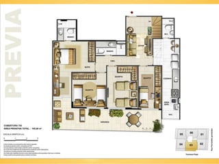 O documento descreve cinco lojas comerciais no pavimento térreo, cada uma com pé direito duplo e metragens variadas, totalizando áreas de 171.45m2, 155.39m2, 144.86m2, 143.51m2 e 151.73m2. As lojas também possuem jirau e vagas disponíveis. O documento sugere que este espaço pode ser utilizado para exercício e luz natural.