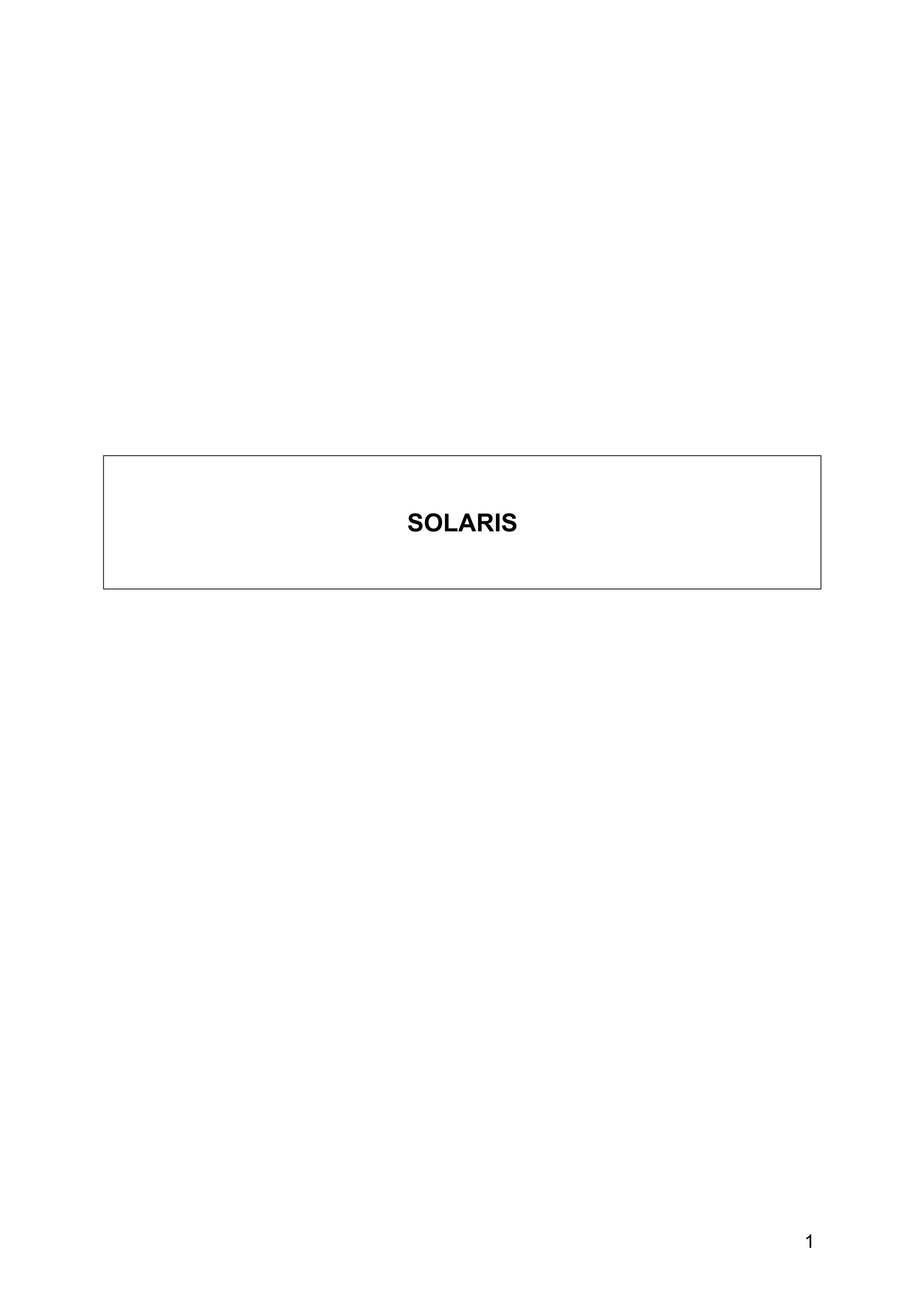 1. O documento discute o sistema operacional Solaris, incluindo seu histórico, gerenciamento de processos, memória, arquivos, entrada e saída e segurança.