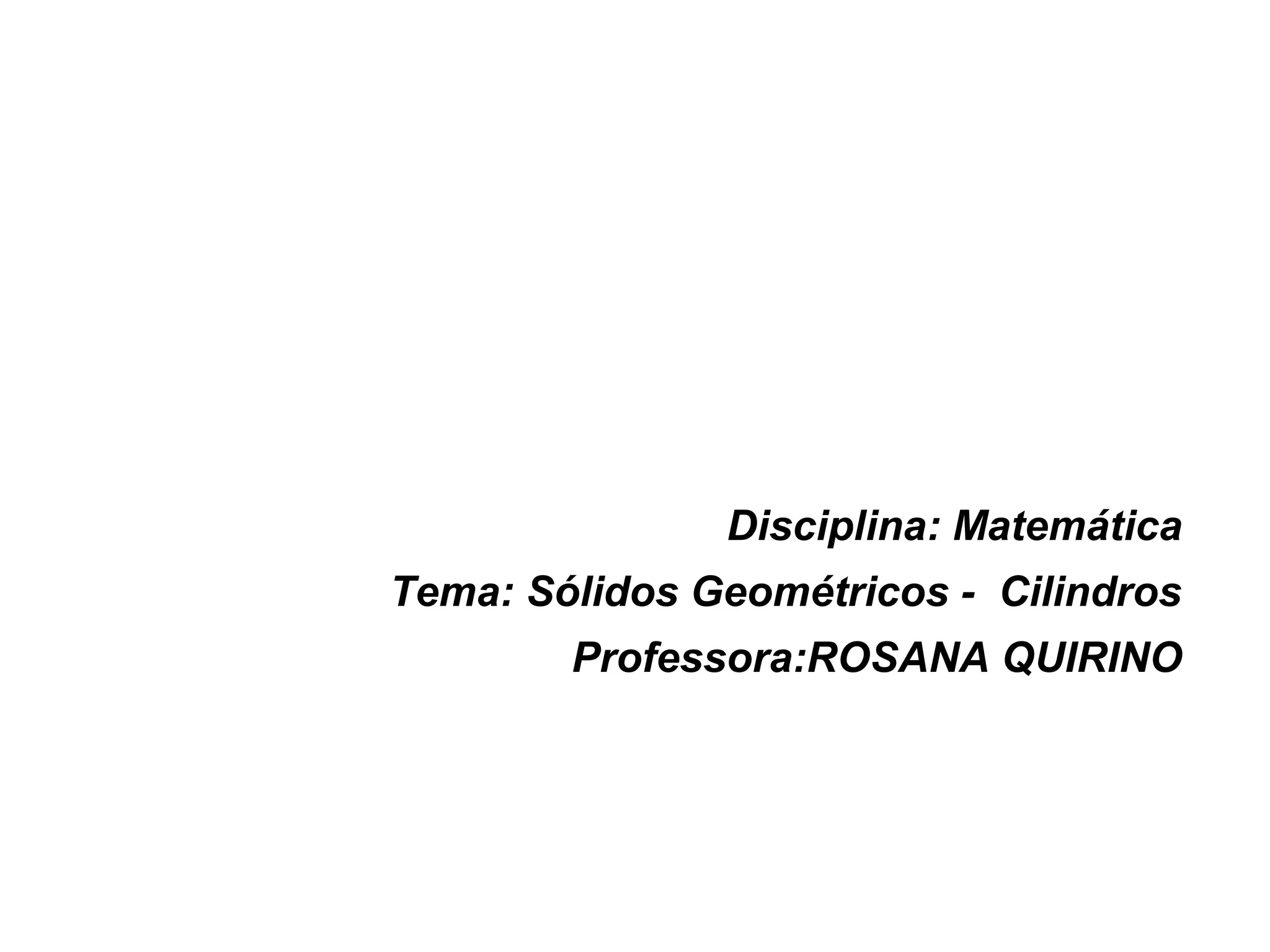 1) O documento discute os tipos de cilindros geométricos, incluindo cilindros oblíquos, retos e de revolução.