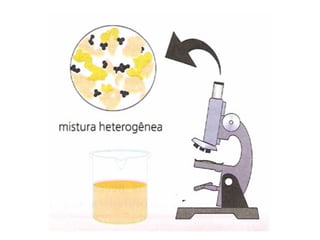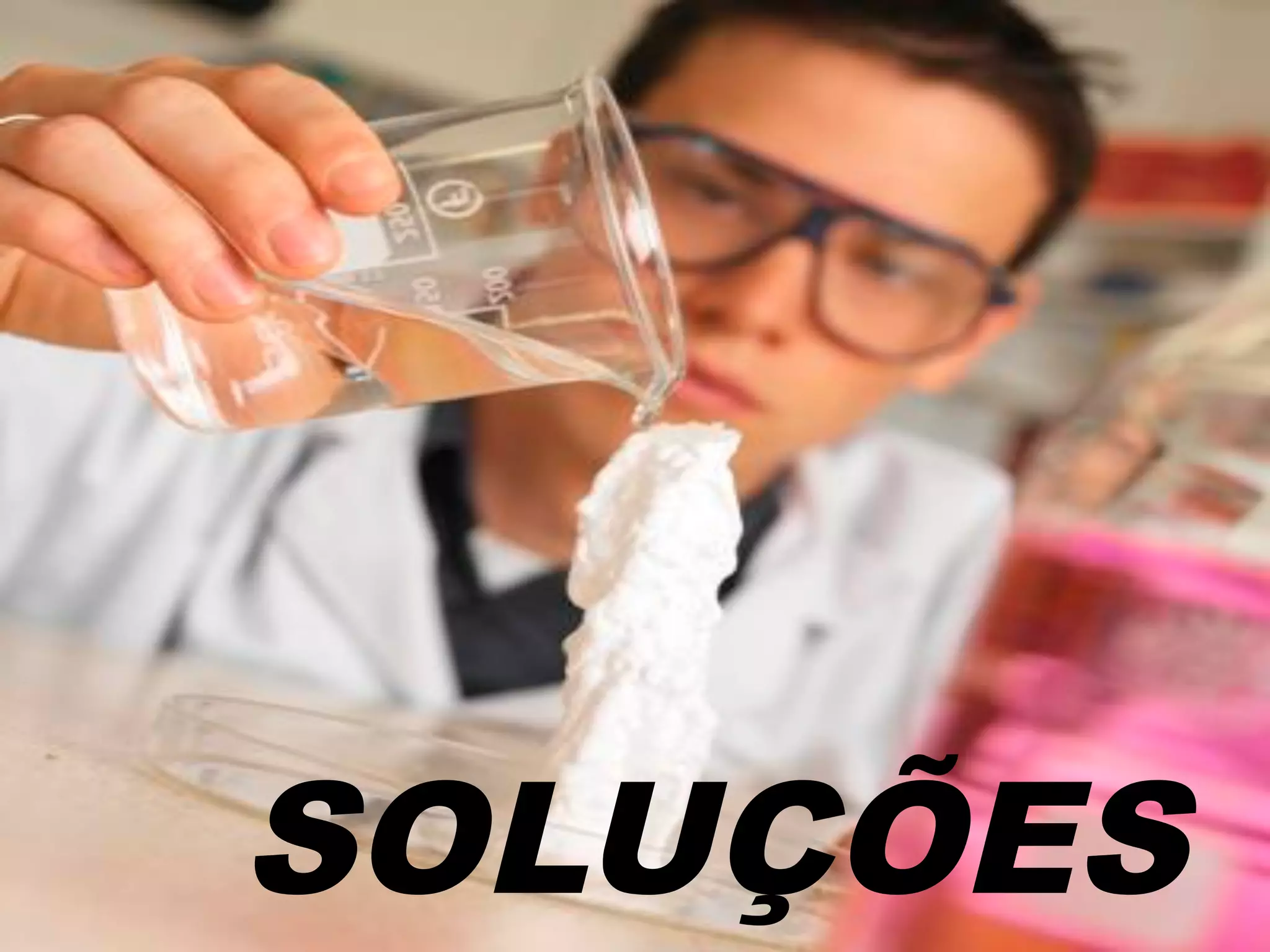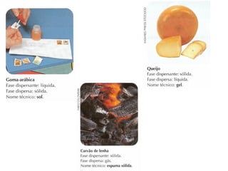 O documento discute soluções, soluções coloidais e suspensões. Ele define soluções como misturas homogêneas formadas por um solvente e um ou mais solutos, com as partículas do soluto menores que 10 angstroms. Soluções coloidais têm partículas entre 10-1000 angstroms, apenas visíveis em microscópio, enquanto suspensões têm partículas acima de 1000 angstroms, visíveis a olho nu.