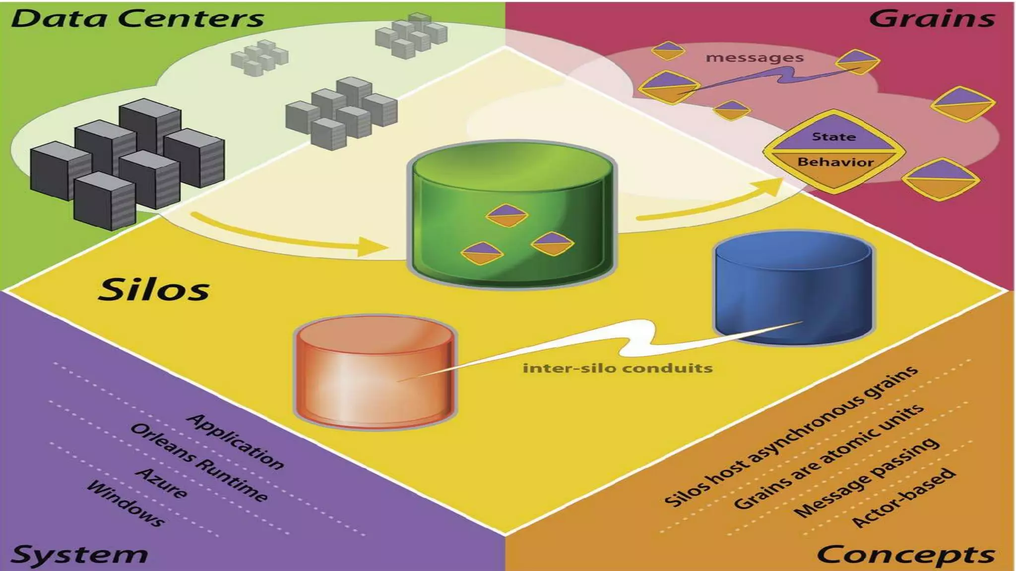 Este documento apresenta o framework Microsoft Orleans para criação de aplicações distribuídas e concorrentes utilizando o padrão Actor Model. O documento discute os desafios de escalabilidade em aplicações com alto tráfego e como o modelo de atores e o Microsoft Orleans abstraem essas complexidades, permitindo escalabilidade horizontal de forma simplificada através do conceito de "Grains".