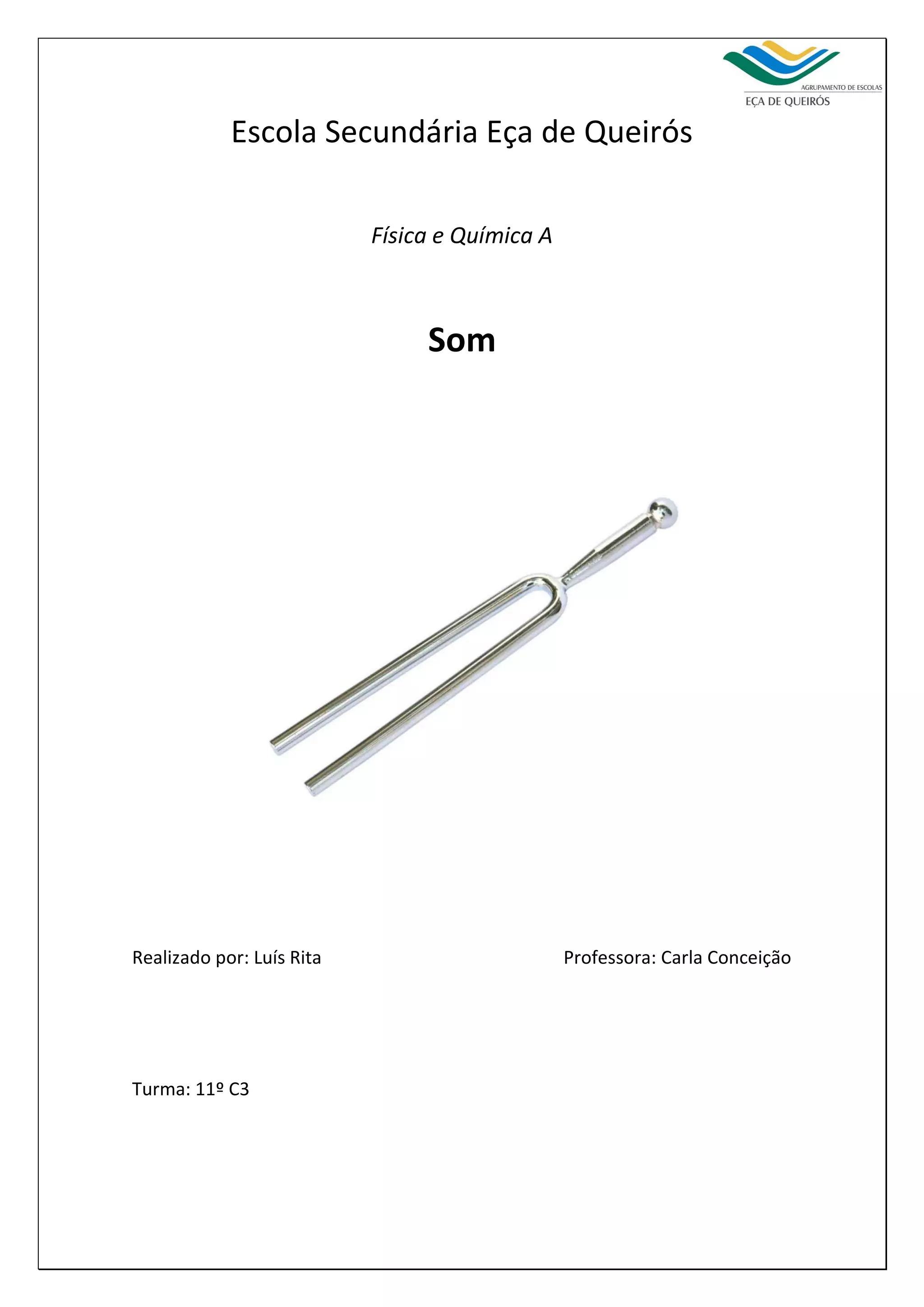 O documento descreve o som, os osciloscópios e o diapasão. Explica que o som é uma onda que precisa de um meio para se propagar e que pode ser produzido por fontes como altifalantes ou a laringe humana. Descreve também o funcionamento dos osciloscópios analógicos e digitais e seu uso para visualizar formas de onda ao longo do tempo. Por fim, explica que o diapasão é um instrumento musical usado para afinar outros instrumentos e vozes através da emissão de um som