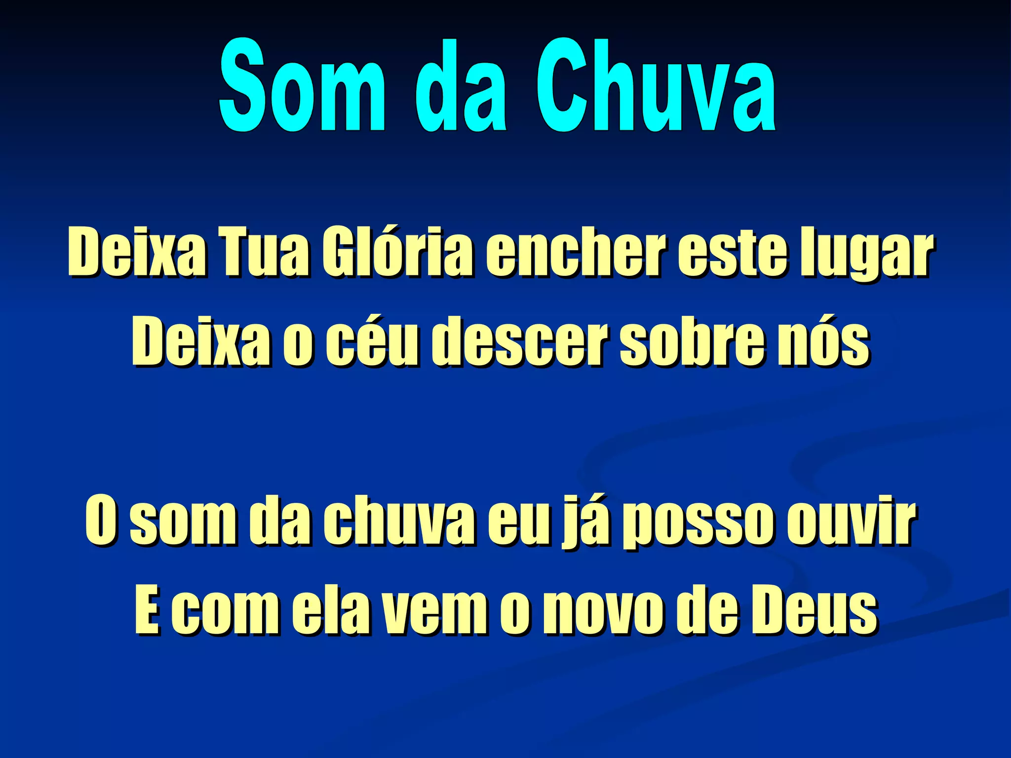 O documento é uma letra de música que pede a Deus para derramar Sua glória e chuva sobre Seu povo. A letra repete o pedido para que Deus derrame Sua chuva abundantemente, trazendo poder, unção, bênção, cura e vitória.