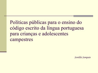 1. O documento discute políticas públicas para o ensino do código escrito da língua portuguesa para crianças e adolescentes campestres.