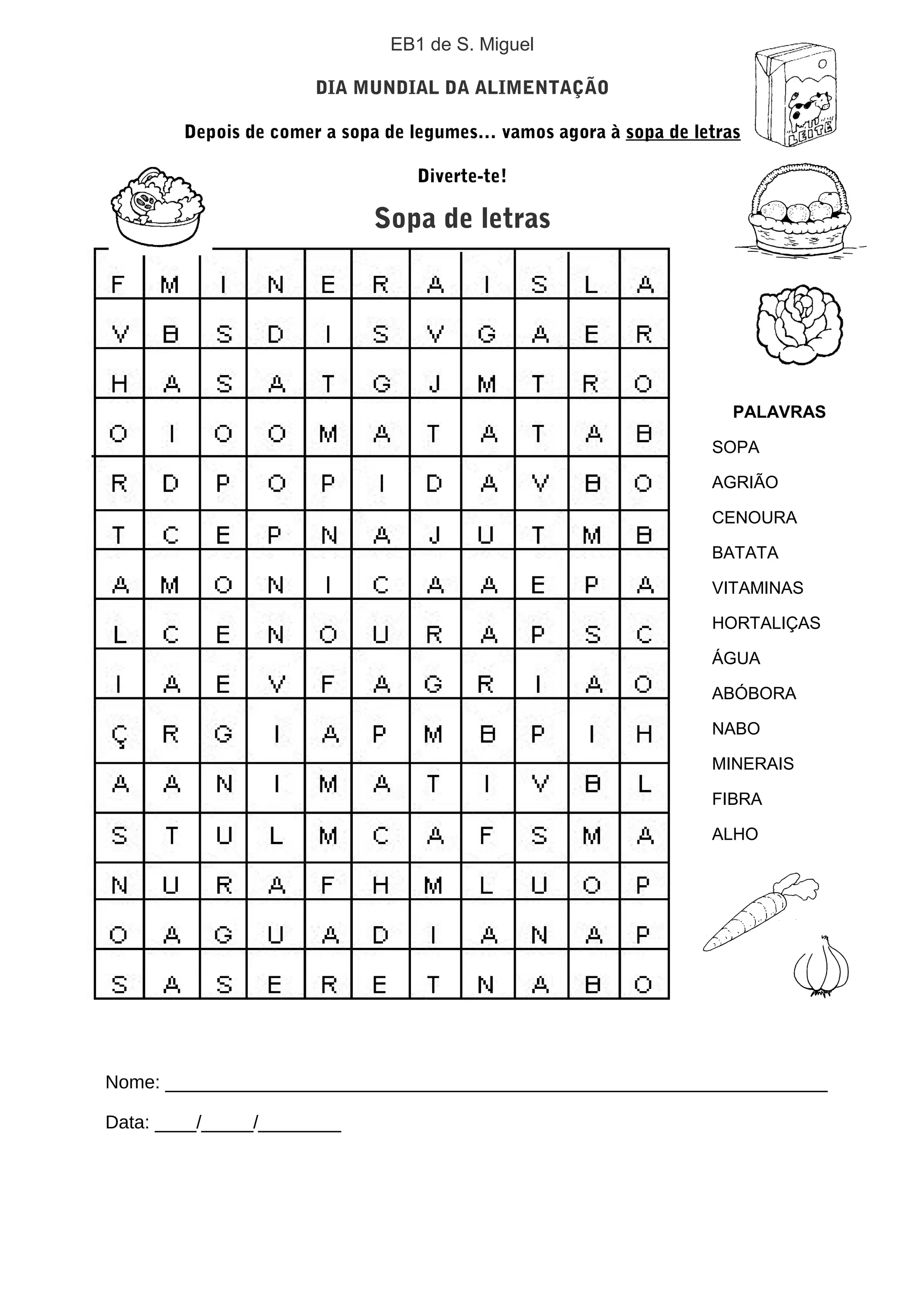 Depois de comer a sopa de legumes… vamos agora à sopa de letras