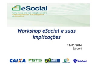 O documento discute as implicações do eSocial, um novo sistema para envio de informações trabalhistas e previdenciárias ao governo de forma unificada e eletrônica. Algumas das principais mudanças incluem a necessidade de qualificação cadastral dos trabalhadores antes do envio de eventos e novas regras para a gestão do FGTS no âmbito do eSocial.
