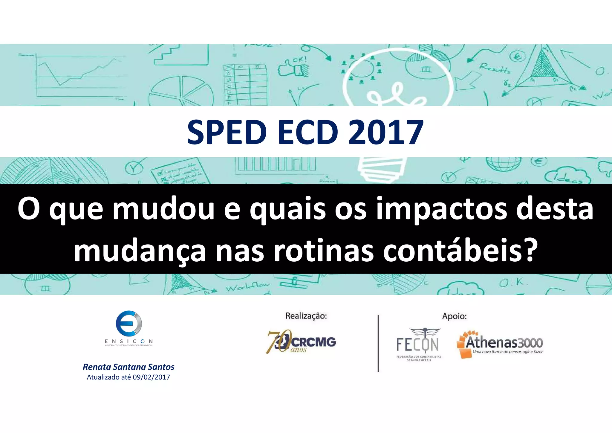 1) O documento discute as principais mudanças na ECD 2017 e seus impactos nas rotinas contábeis.