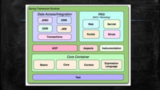 O documento é uma introdução prática ao Spring Framework, abordando temas como inversão de controle, injeção de dependência e configuração através de XML e anotações. O Spring é um framework que simplifica a programação, resolvendo a complexidade dos EJBs e implementando padrões de projeto. Também discute transações e agendamento de tarefas, fornecendo exercícios para prática.