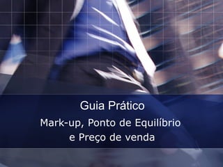 O documento é um guia prático sobre como calcular o mark-up, ponto de equilíbrio e preço de venda de produtos em uma loja. Inclui um exemplo específico com custos fixos e variáveis, mostrando como determinar o preço de venda e a meta mínima de vendas para não ter prejuízo. O foco é ensinar o leitor a avaliar corretamente os custos e estabelecer estratégias de preços para garantir lucro.