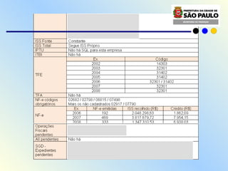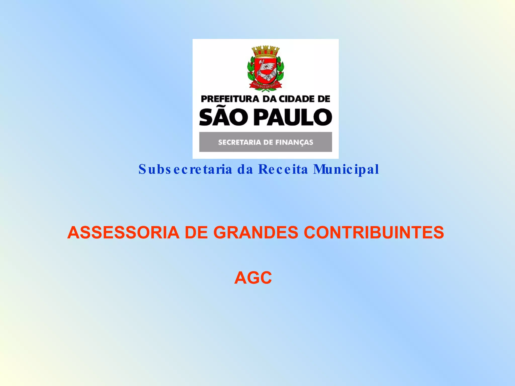 A AGC monitora grandes contribuintes que representam 50% da arrecadação tributária municipal. O aplicativo SINDAT/GC fornece dados integrados sobre cadastro, notas fiscais, recolhimentos e propriedades dos grandes contribuintes para avaliação tributária. A AGC busca manter a regularidade dos grandes contribuintes por meio de comunicação e esclarecimento de dúvidas.