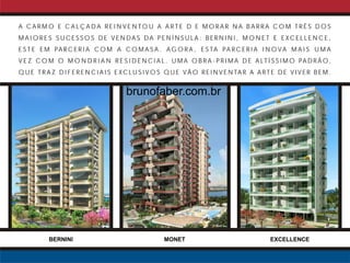 Este documento descreve os detalhes de um empreendimento imobiliário de luxo localizado na Península de São Paulo. O projeto oferece apartamentos de alto padrão com diversas comodidades, como piscinas, academia, espaços para lazer e entretenimento das crianças. Além disso, o documento destaca os diferenciais do projeto arquitetônico e de acabamento dos imóveis.