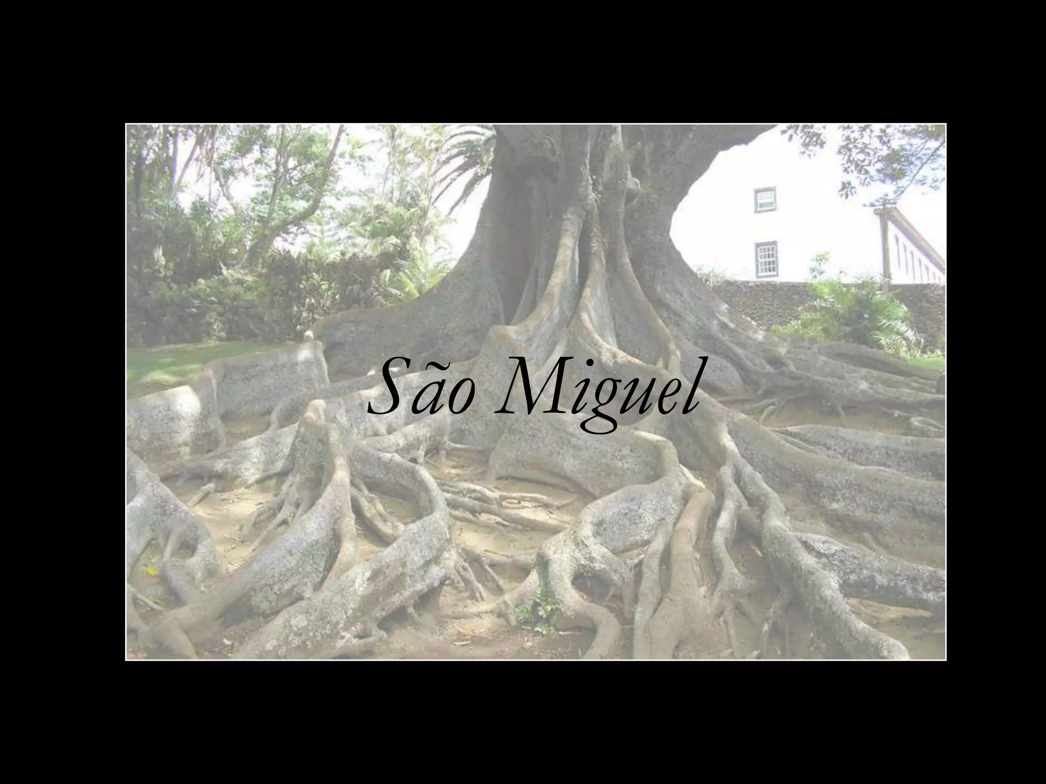 O documento descreve diversas localidades e pontos de interesse da ilha de São Miguel nos Açores, incluindo parques naturais, povoações, miradouros, praias, lagos, ilhéus e plantações. As localidades mencionadas são Nordeste, Povoação, Furnas, Vila Franca do Campo, Ribeira Grande, Mosteiros e Sete Cidades, conhecida pelos seus característicos lagos de diferentes cores.