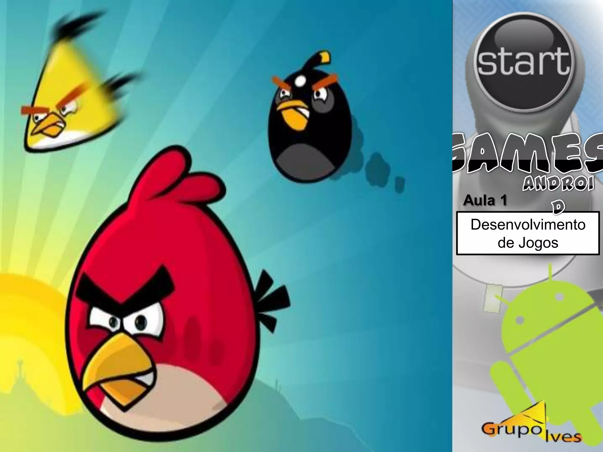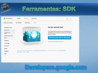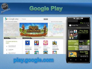 O documento discute o desenvolvimento de jogos para dispositivos Android, abordando tópicos como: introdução ao desenvolvimento de jogos em Android; implementação de física em jogos; disponibilização de jogos para download; e criação de jogos interativos de sucesso na plataforma Android. Apresenta também exemplos de código para criação de cenas, sprites e mecânicas de jogo.