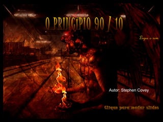 O documento apresenta o princípio 90/10, que afirma que 10% da nossa vida está relacionado ao que nos acontece, enquanto 90% são determinados pela nossa reação a esses eventos. Exemplos são dados para ilustrar como reações negativas podem arruinar o dia, enquanto reações positivas podem levar a resultados melhores. A mensagem final enfatiza a importância de escolher reações adequadas para reduzir o estresse e melhorar a qualidade de vida.