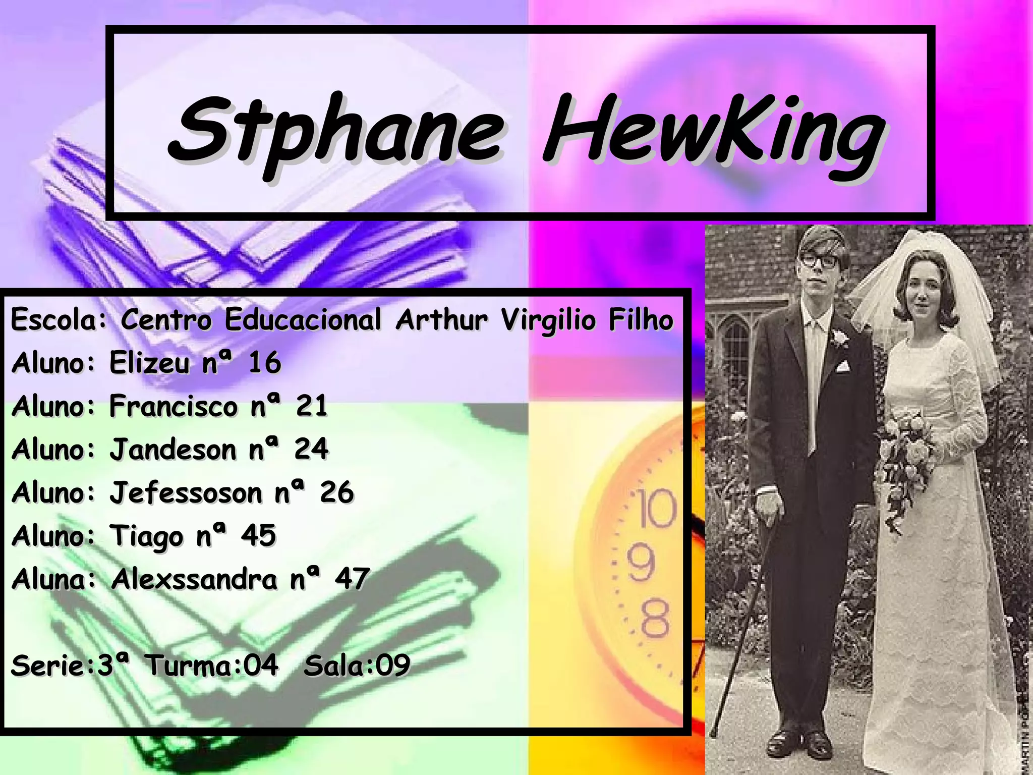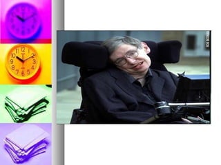 Stephen Hawking foi um físico inglês nascido em 1942 reconhecido por seus estudos fundamentais sobre buracos negros e o Big Bang. Ele propôs que miniburacos negros foram formados após o Big Bang e calculou que buracos negros emitem radiação, conhecida como radiação Hawking. Apesar de ter sido diagnosticado com uma doença degenerativa aos 21 anos, continuou realizando importantes contribuições à física e cosmologia.