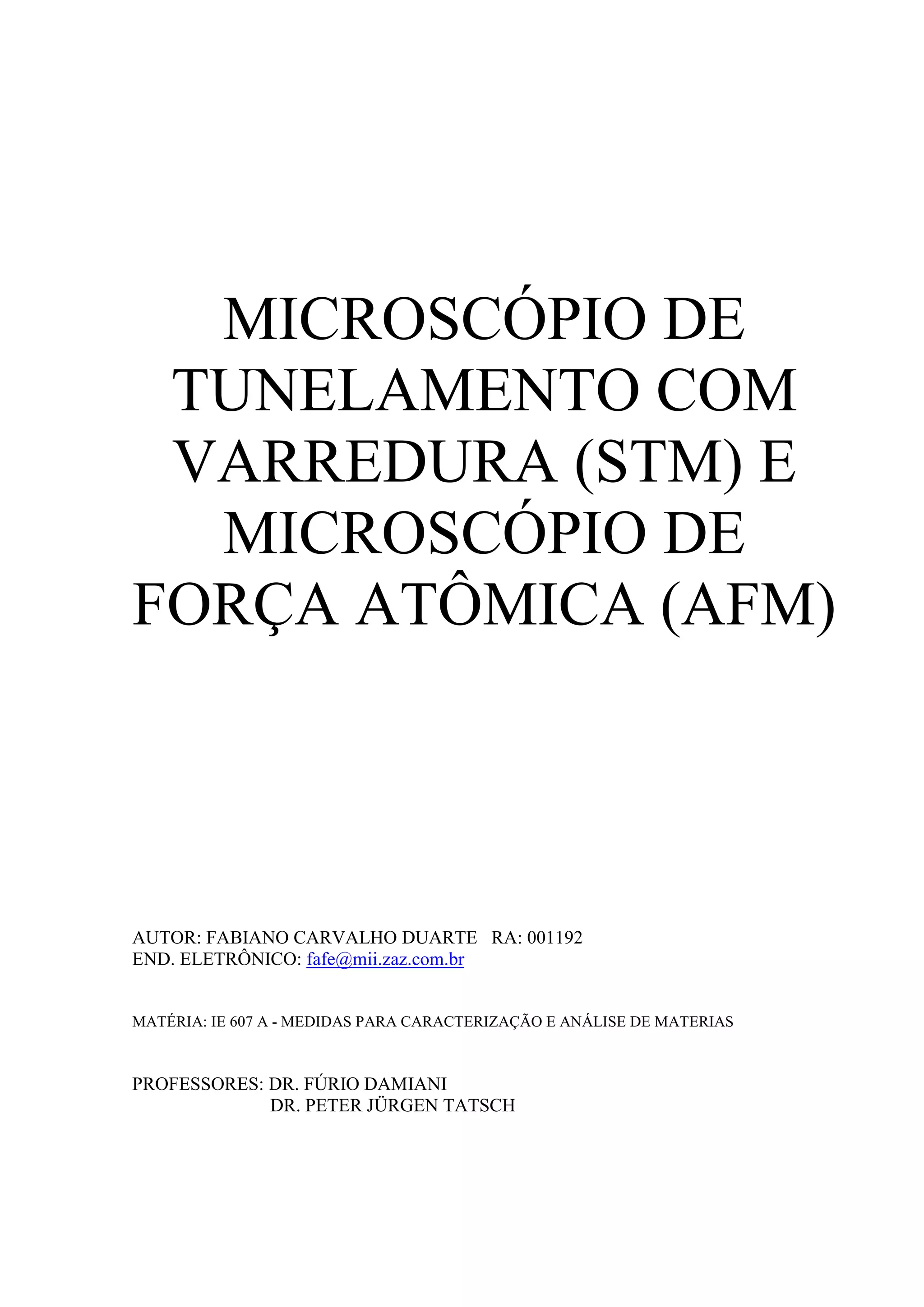 1. O documento descreve microscópios de varredura por sonda (SPM), incluindo o microscópio de tunelamento com varredura (STM) e o microscópio de força atômica (AFM).