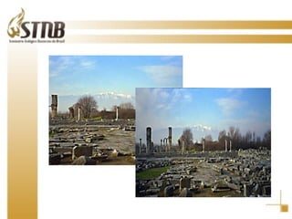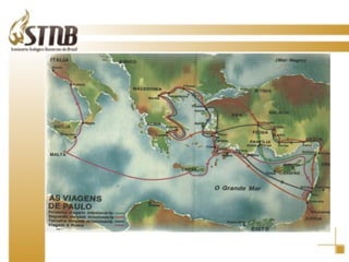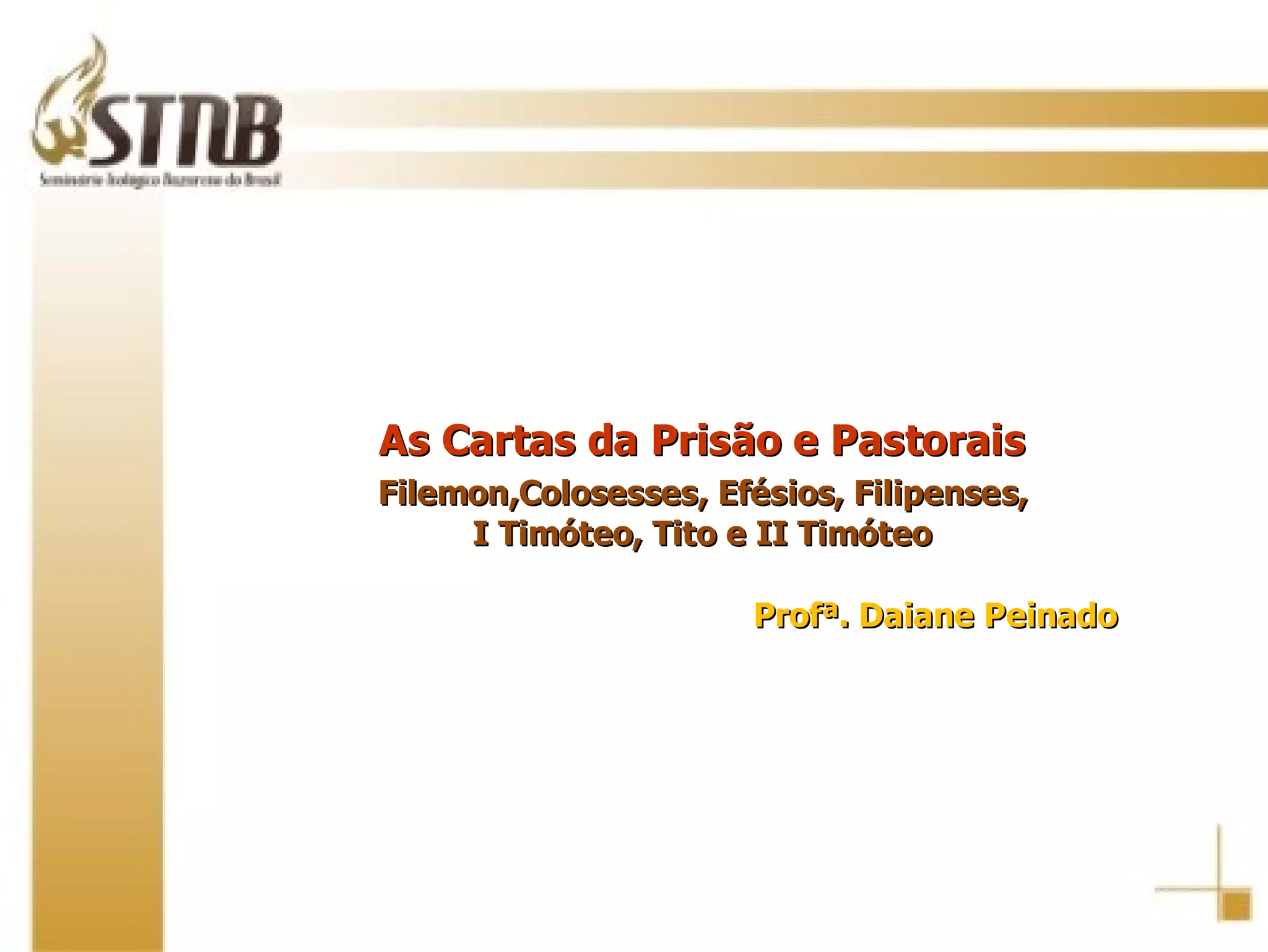 O documento discute as cartas do Novo Testamento escritas por Paulo, incluindo as cartas a Filemom, Colossenses, Efésios, Filipenses, I e II Timóteo e Tito. Ele fornece contextos históricos sobre as cidades e igrejas a que foram endereçadas e resume os principais temas tratados em cada carta.