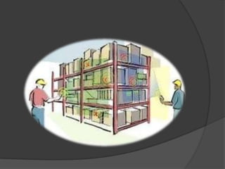 O documento discute os principais fatores e requisitos para uma gestão eficiente de armazenagem, incluindo a conservação adequada dos materiais, organização do espaço, facilitação da entrada e saída dos itens, e sistemas de codificação como o método da quadricula e dos corredores.