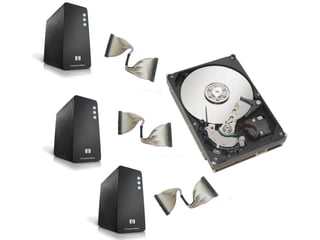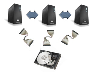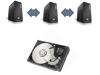 O documento discute as diferentes opções para armazenamento de máquinas virtuais, incluindo armazenamento local versus remoto, nível de bloco versus nível de arquivo, e tecnologias como NAS, SAN, arquivos clusterizados e replicação de blocos. Ele também explica formatos de arquivo comuns e recursos como provisionamento dinâmico, snapshots e clones.