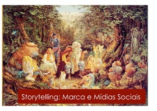 O documento explora a importância do storytelling na construção de marcas e na interação com consumidores em mídias sociais. Destaca a necessidade de diferenciação e relevância ao contar histórias, utilizando arquétipos para conectar com os consumidores. A integração do mundo digital e real é fundamental para manter a consistência da marca em um ambiente em constante mudança.