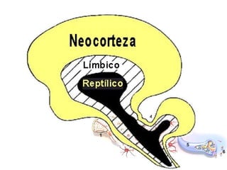 O documento discute os três cérebros que compõem a mente humana e como eles podem causar auto-sabotagem e conflitos. De acordo com o Dr. Paul McLean, existem o cérebro operacional responsável por instintos e sobrevivência, o cérebro intuitivo responsável por emoções e afetos, e o cérebro racional responsável por palavras, razão e abstrações. Cada um desses cérebros pode entrar em conflito e sabotar o indivíduo. O documento sugere autoconhecimento para reconhecer as pró