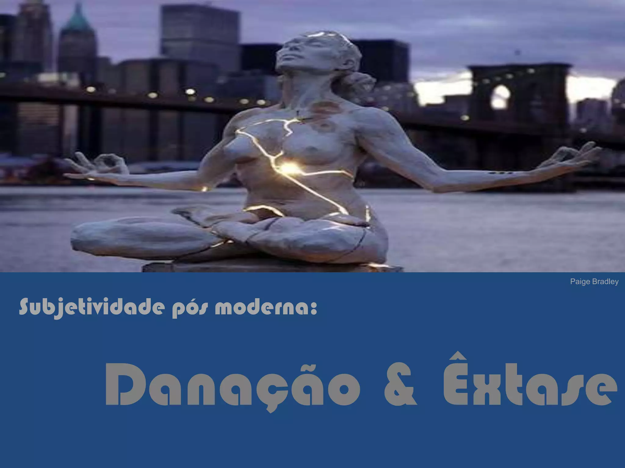 [1] O documento discute a subjetividade pós-moderna e como as identidades estão em constante mudança e fragmentação. [2] Não há mais um núcleo interior fixo e estável, mas múltiplas identidades que podem ser contraditórias. [3] Na era pós-moderna, o corpo se expande através de códigos comunicacionais e uma fusão com objetos e tecnologias.