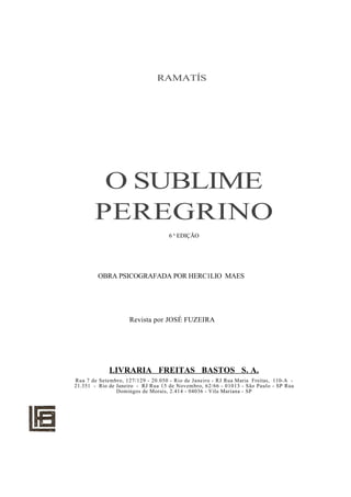 1) O documento apresenta algumas considerações iniciais sobre a obra "O Sublime Peregrino", que irá abordar aspectos da vida de Jesus de forma não dogmática e procurando revelar a verdadeira natureza espiritual de Jesus.