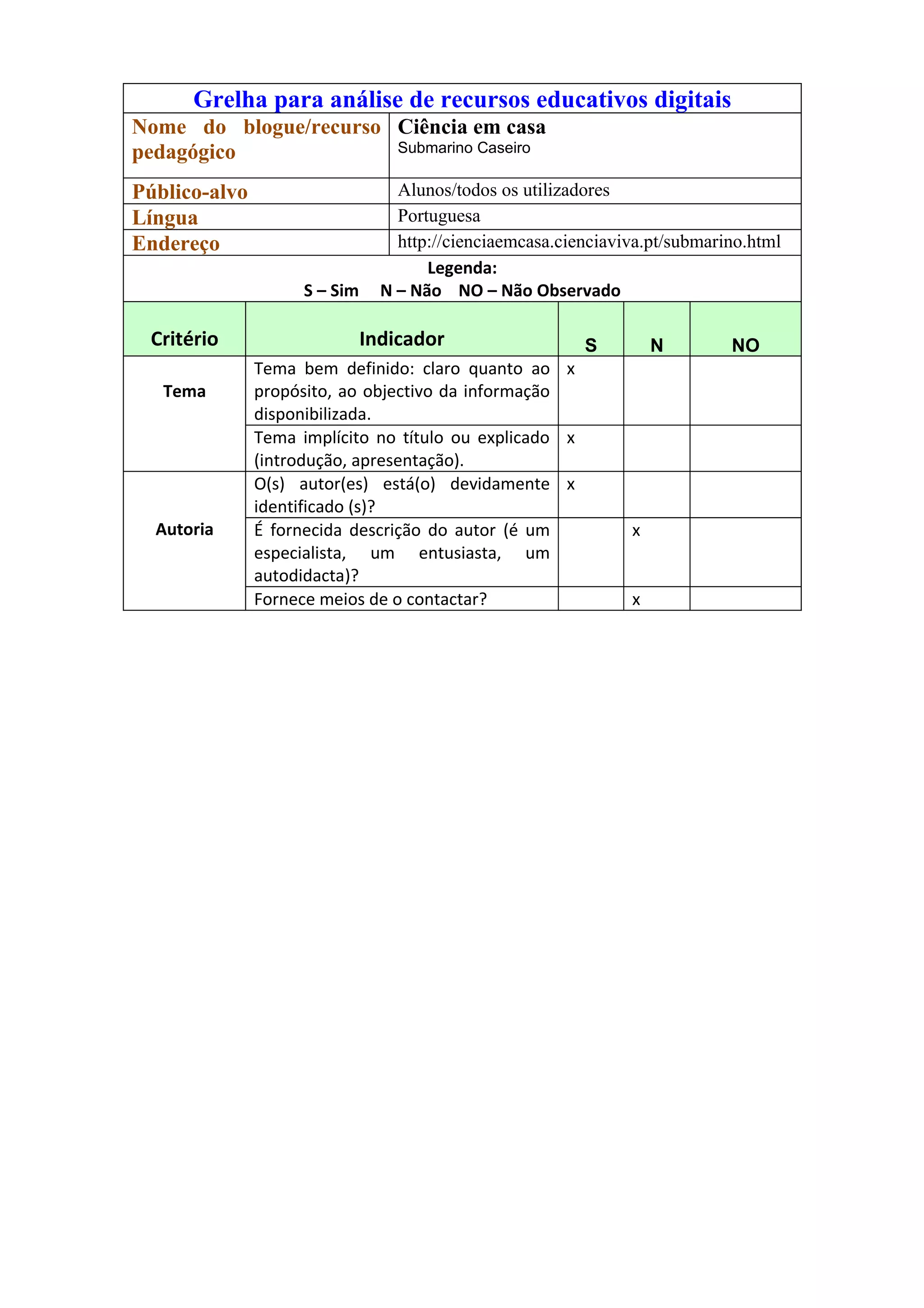 Este documento analisa os recursos educativos digitais do blogue "Ciência em Casa" sobre a construção caseira de um submarino. O resumo indica que o recurso tem um tema bem definido, é escrito em português e direcionado a alunos e todos os utilizadores. Fornece informações originais, precisas e pertinentes sobre como construir um submarino caseiro de forma acessível.