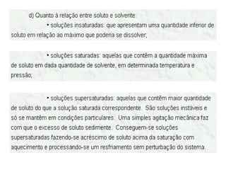 3) Misturas podem ser homogêneas ou heterogêneas dependendo de terem uma ou mais fases, e soluções são um tipo específico de mistura homogênea.