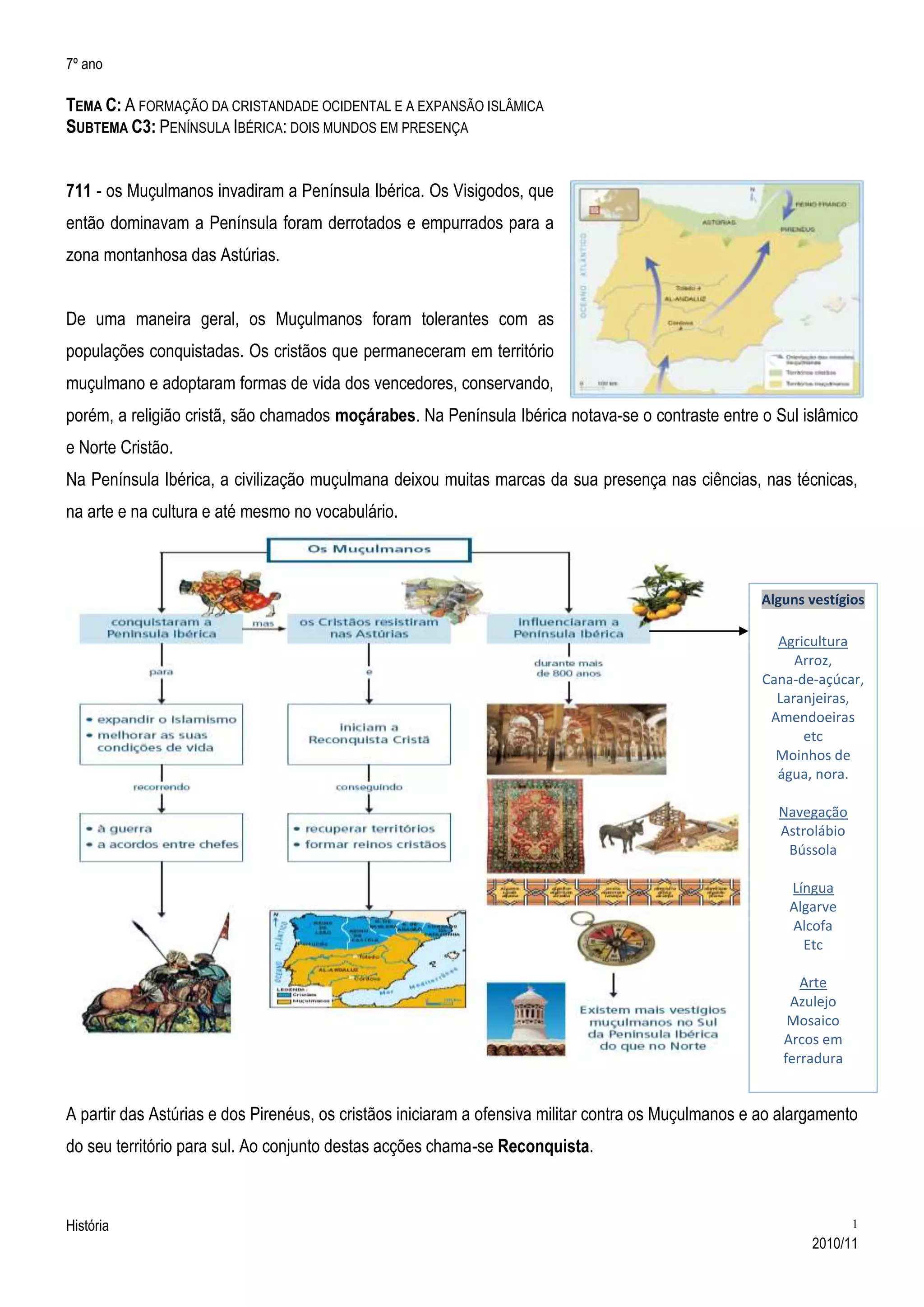 2) A civilização muçulmana deixou marcas duradouras na agricultura, navegação, língua e artes da Península Ibérica.