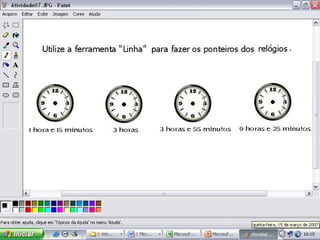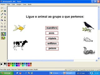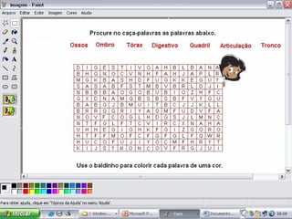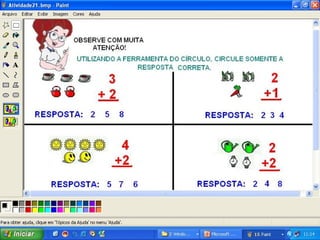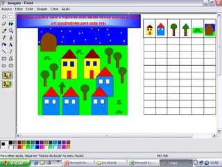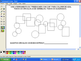 Este documento fornece sugestões de atividades artísticas no programa Paint, incluindo responder perguntas com desenhos, ilustrar cantigas, reproduzir pinturas famosas, ilustrar textos, fazer histórias em quadrinhos e desenhos livres.