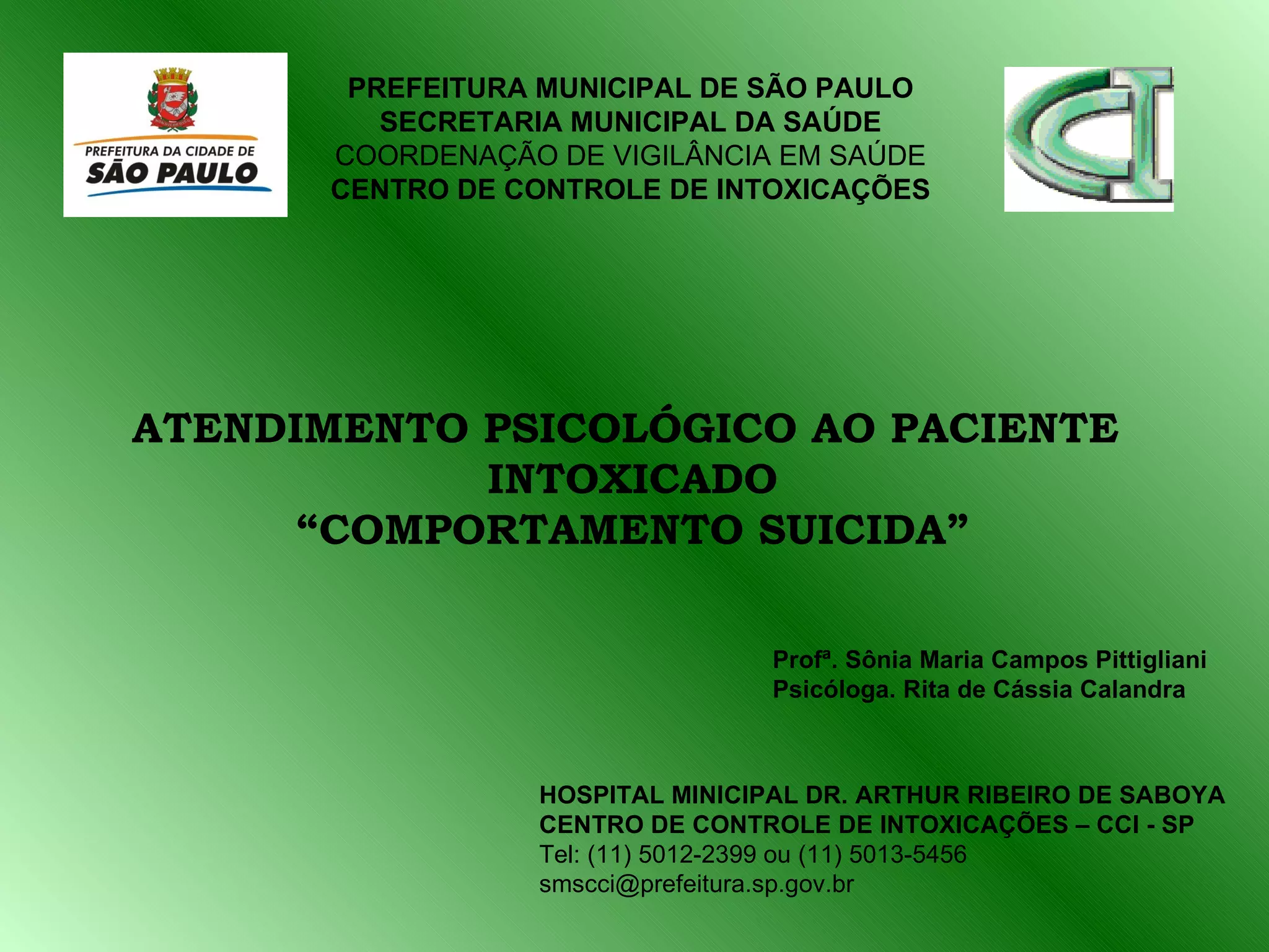 O documento discute o problema sério do suicídio como uma causa importante de morte, especialmente entre jovens. Apresenta estatísticas sobre a incidência de suicídio no mundo e fatores de risco, como depressão, transtornos mentais, uso de álcool e facilidade de acesso a meios letais. Também descreve um caso clínico de uma paciente que tentou suicídio após overdose de medicamentos e apresentava diversos fatores de risco psiquiátricos e sociais.