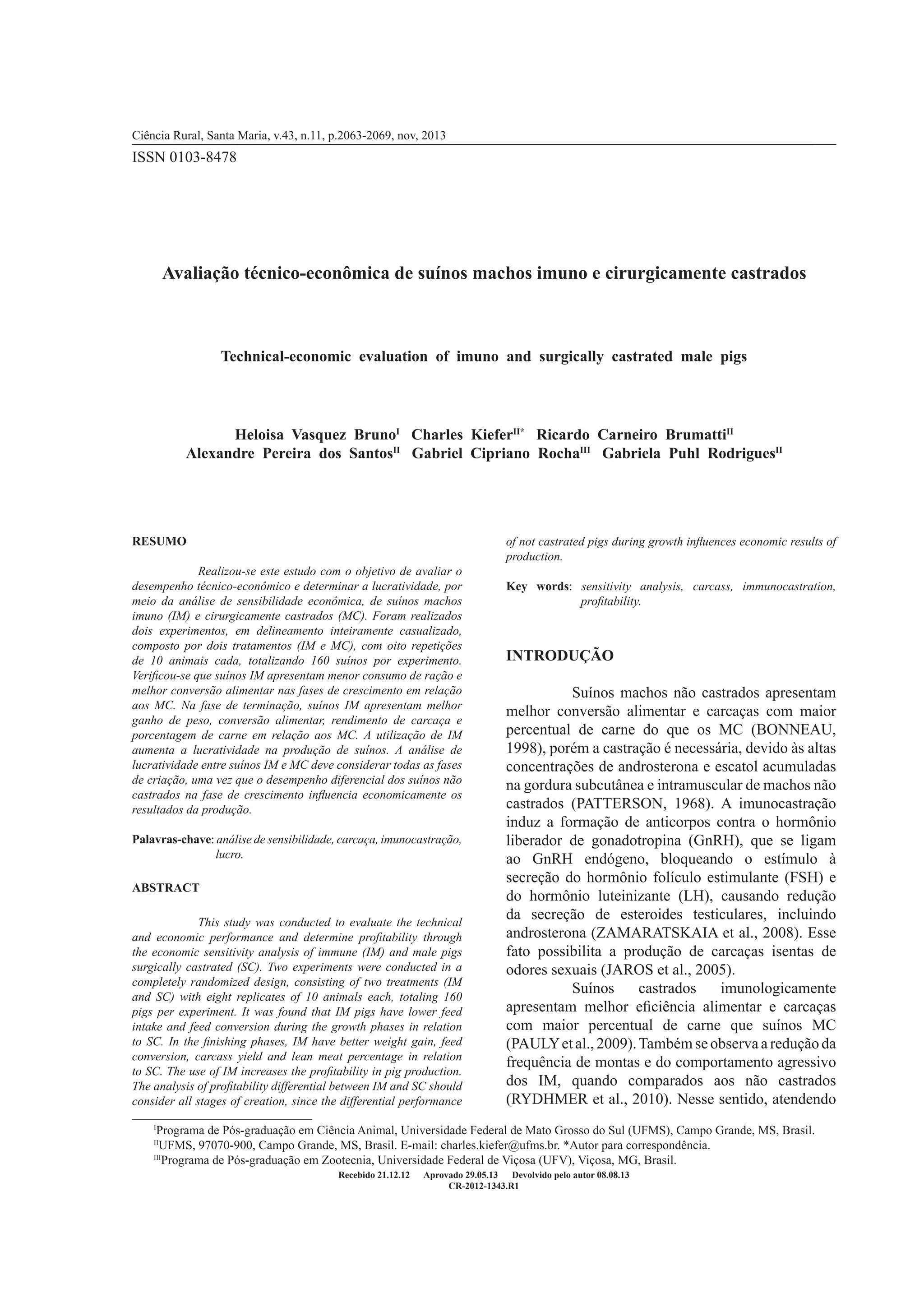 2) A análise econômica mostrou que a utilização de suínos machos imunocastrados aumenta a lucratividade na produção em comp