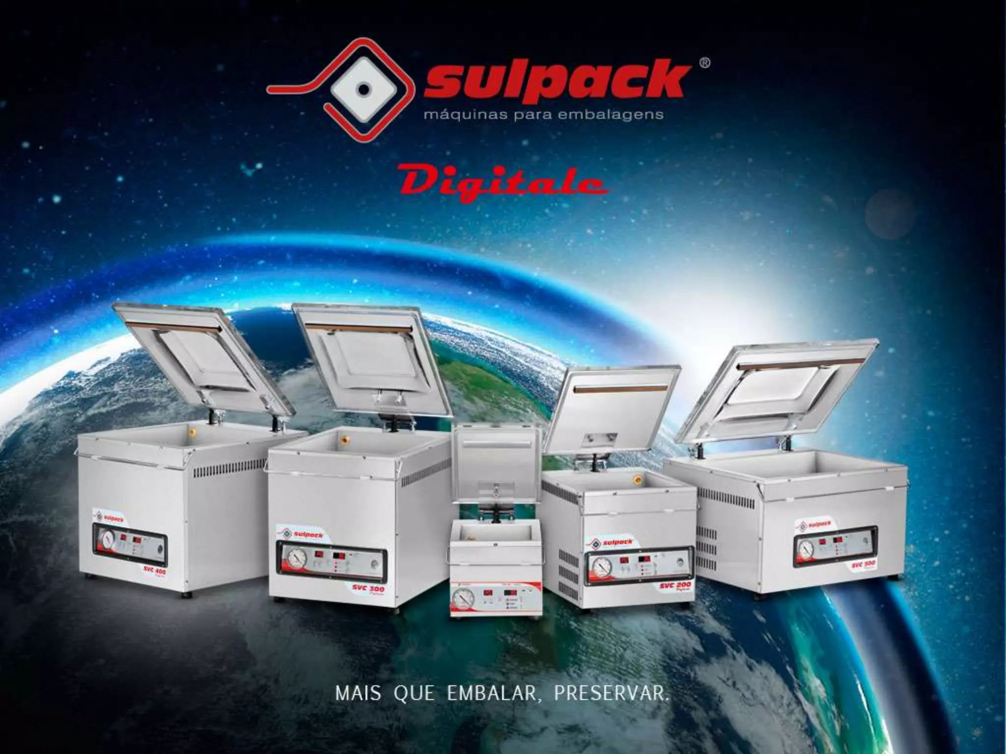 Máquina embaladora a vácuo, de câmara, fabricada pela Sulpack de Caxias do Sul - RS. Painel de controle digital, mais de 15 programas de vácuo, controle de operações diárias.
