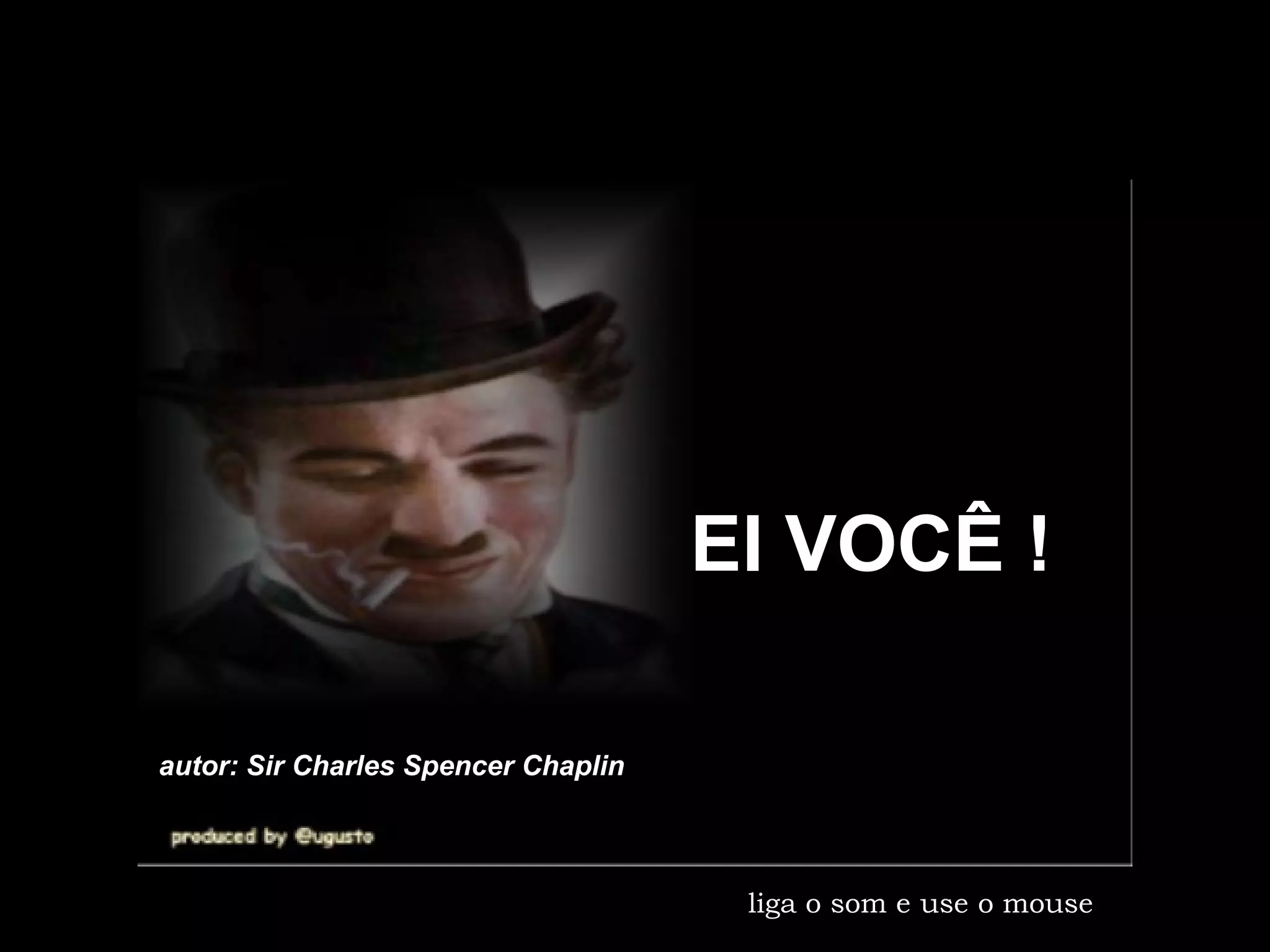 Charles Chaplin escreve um texto encorajando as pessoas a serem elas mesmas, amarem uns aos outros, e aproveitarem a vida ao máximo, superando obstáculos e seguindo seus sonhos sem prejudicar os outros.