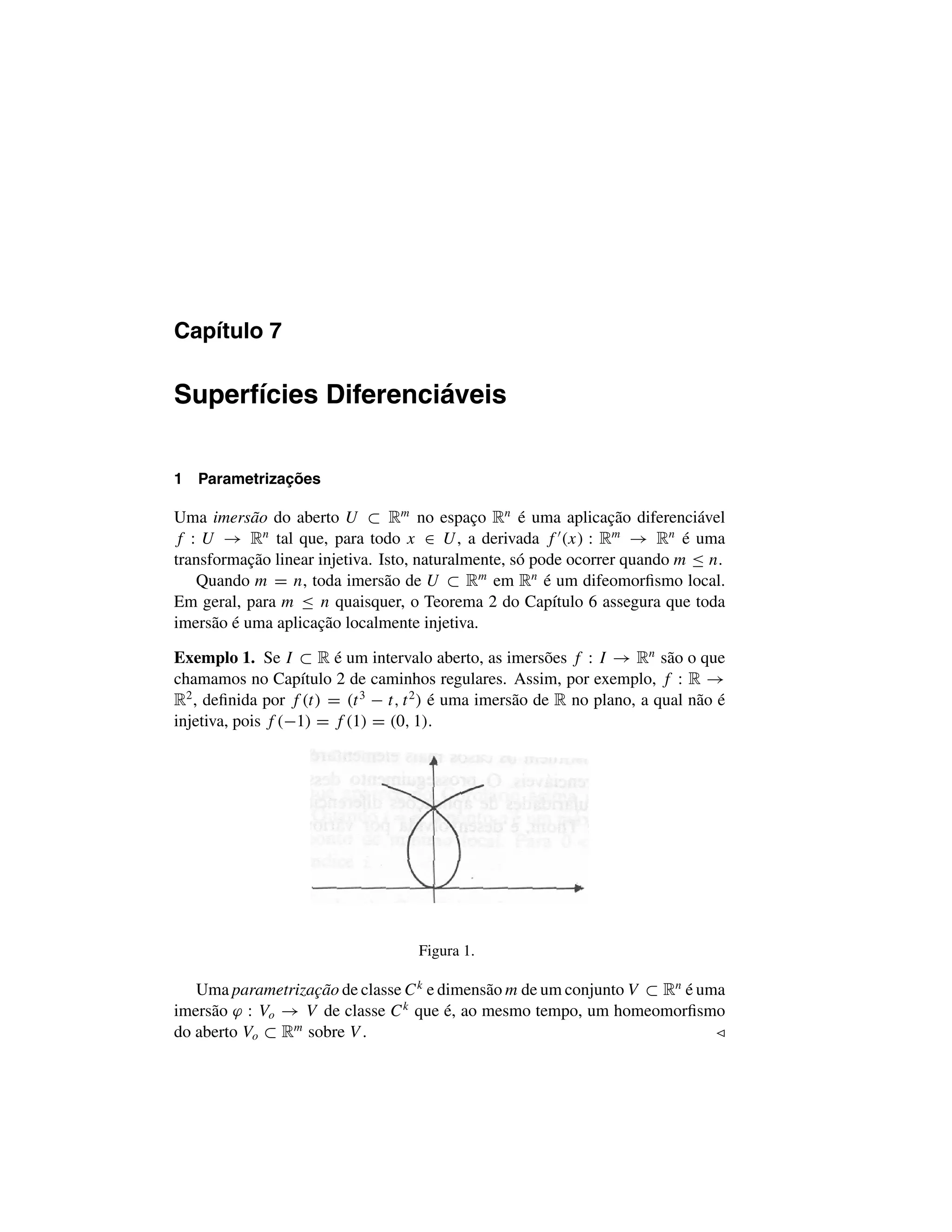 O documento descreve superfícies diferenciáveis em Rn. Uma superfície é localmente o gráfico de uma função diferenciável. O espaço vetorial tangente em um ponto p é um subespaço vetorial TpM de Rn que representa a direção das curvas na superfície através de p.