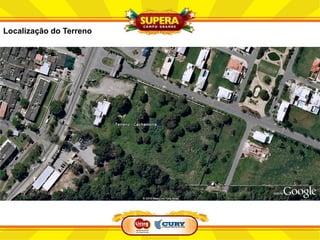 Este documento apresenta os detalhes de um empreendimento residencial incluindo fotos aéreas do terreno, implantação, itens de lazer como quadra poliesportiva e piscina, estudos de imagens das áreas comuns e apartamentos, plantas baixas dos apartamentos de diferentes tamanhos, localização dos apartamentos, e ficha técnica com informações sobre a construtora, localização, número de torres, unidades e vagas.