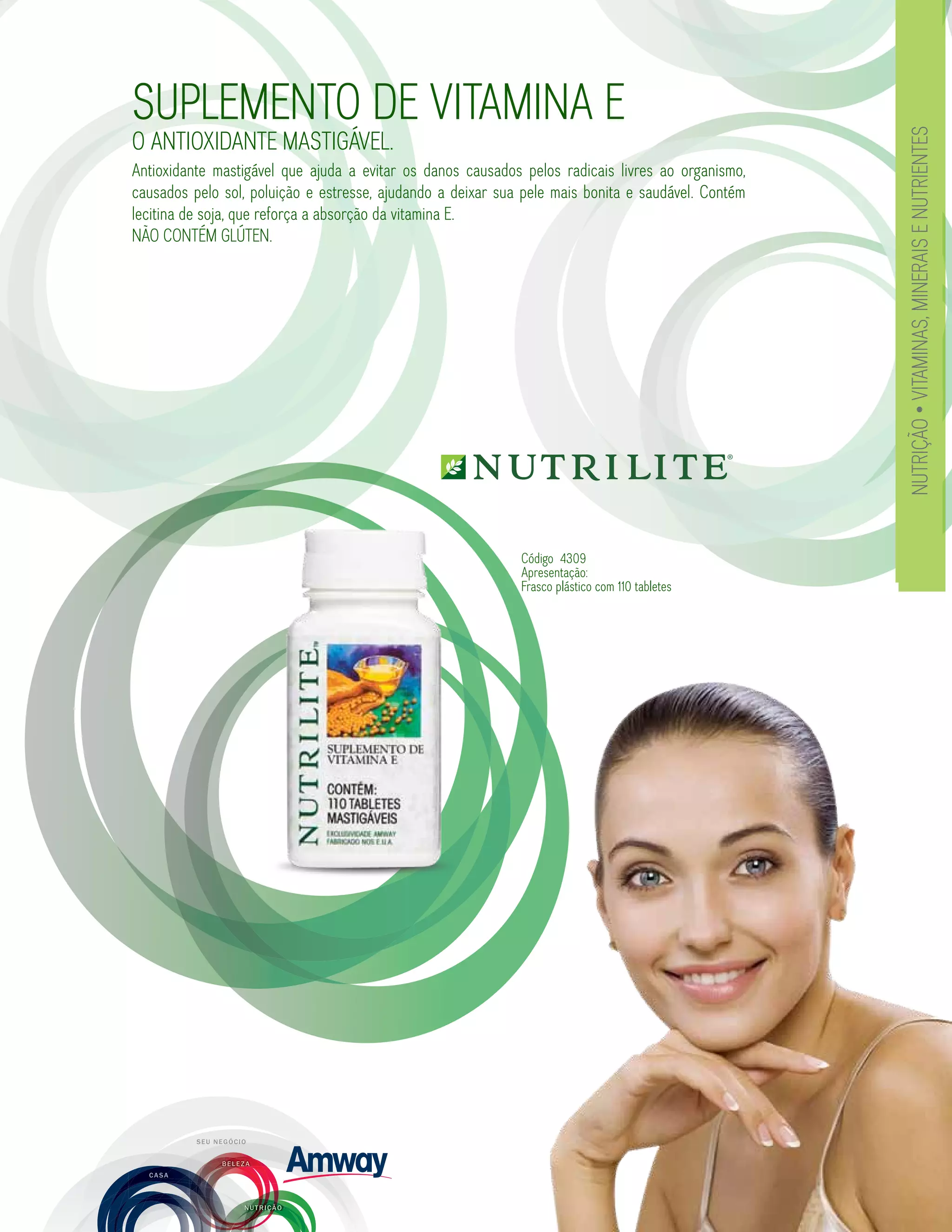 Antioxidante mastigável à base de vitamina E que ajuda a proteger o organismo contra danos causados por radicais livres. Contém lecitina de soja para melhor absorção da vitamina E e tem sabor agradável de mel com nozes. Recomenda-se para pessoas sob estresse ou que desejam aumentar a proteção antioxidante.
