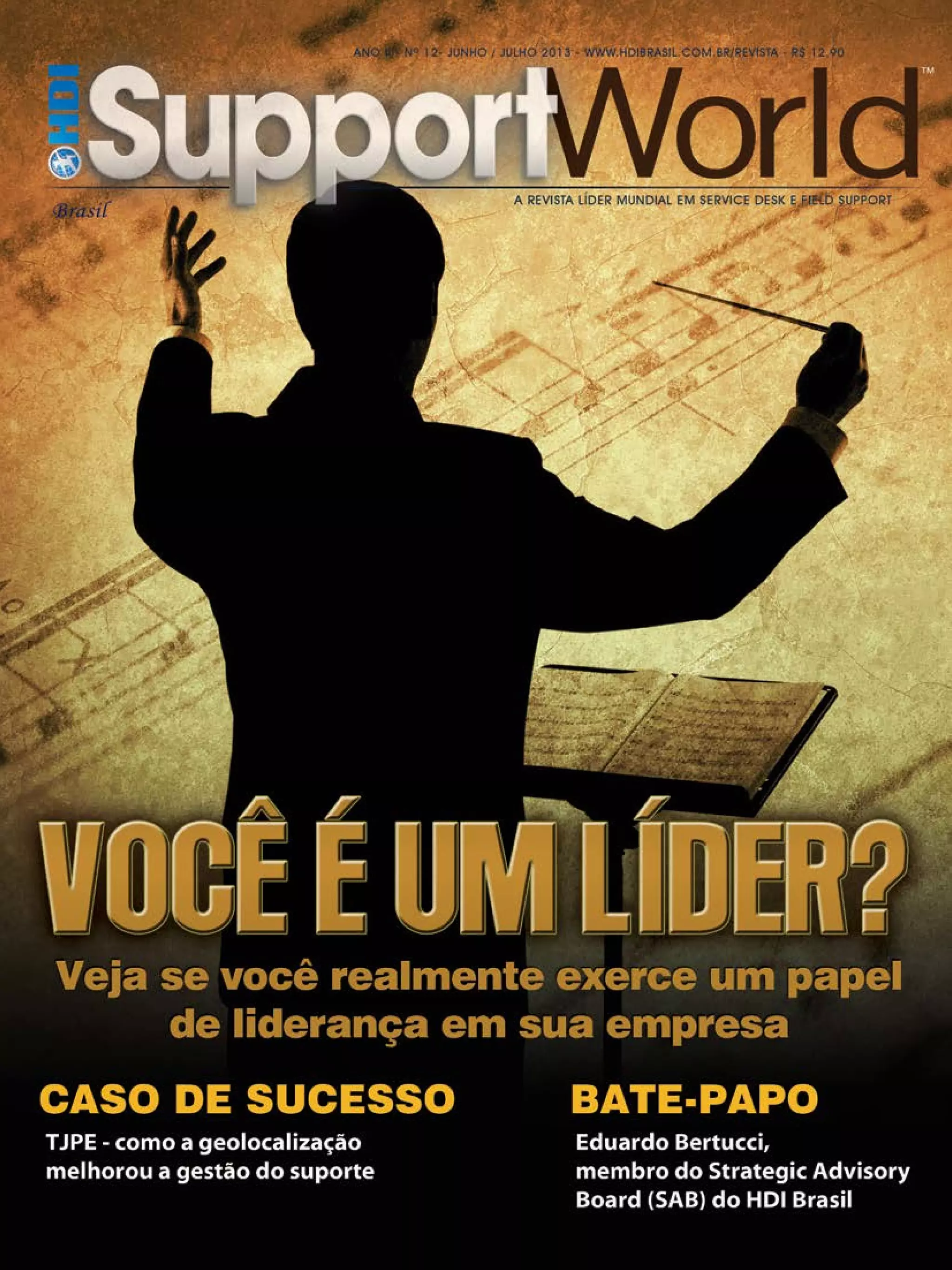 Este documento fornece uma visão geral da edição de junho/julho de 2013 da revista SupportWorld Brasil. Inclui uma carta do editor, artigos de colunistas sobre tópicos como proatividade no Service Desk e turnover, um caso de sucesso do Tribunal de Justiça de Pernambuco, e uma cobertura completa da Conferência & Expo Internacional HDI Brasil 2013.