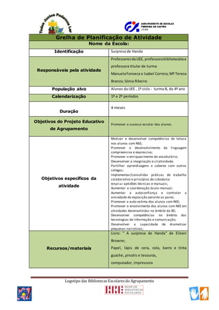 Esta atividade envolveu a leitura do livro "A surpresa de Handa" com alunos do 4o ano com necessidades educativas especiais. Os objetivos incluíram promover competências de leitura e linguagem, imaginação, trabalho em equipe e autoestima. As atividades realizadas foram a leitura da história, dramatização, modelagem de frutos, pintura e construção de um livro inspirado na história. A atividade foi bem-sucedida e envolveu todos os alunos.