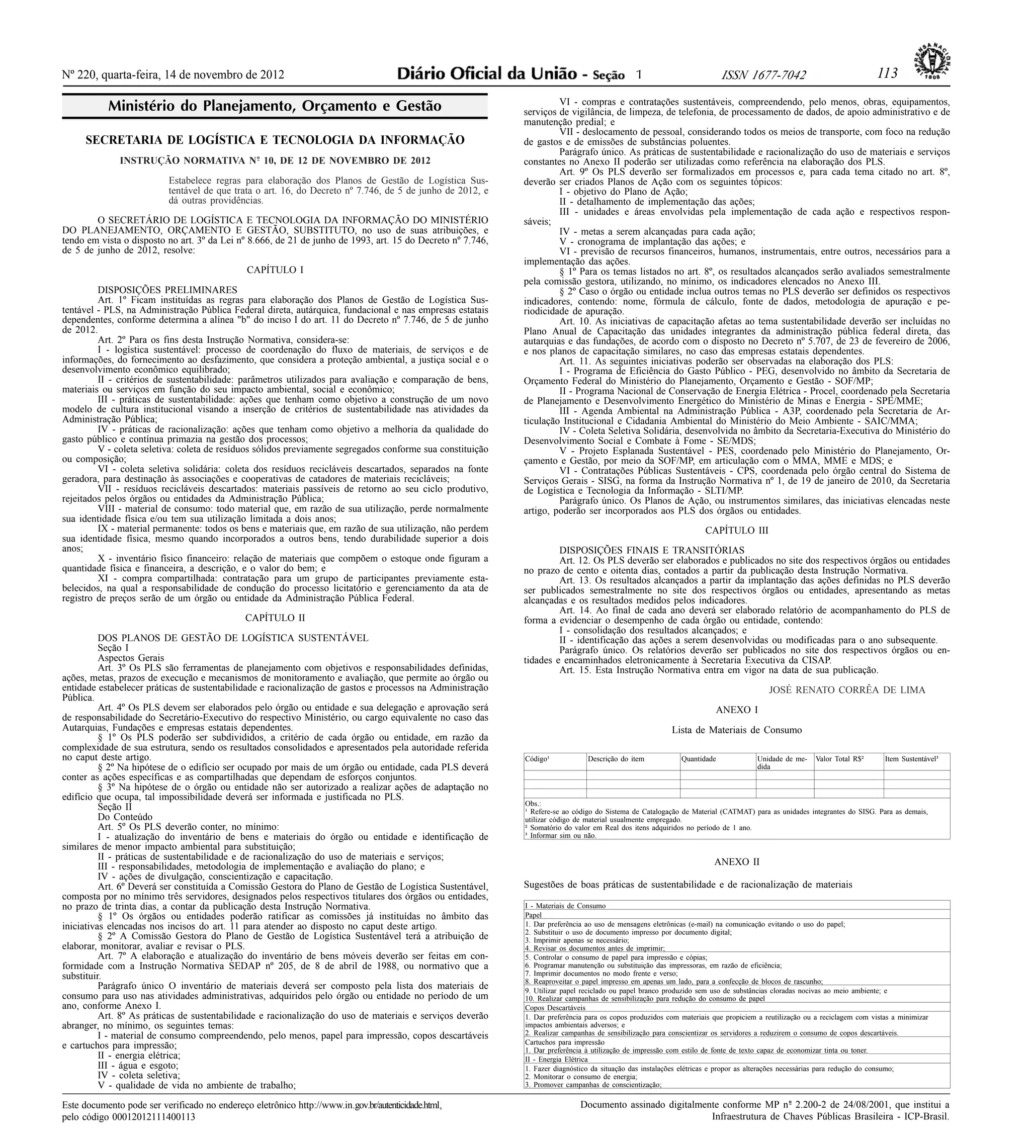 Este documento estabelece regras para a elaboração de Planos de Gestão de Logística Sustentável pelos órgãos da administração pública federal. Os planos devem abranger temas como materiais de consumo, energia, água, coleta seletiva e qualidade de vida no ambiente de trabalho, com ações, metas e indicadores de avaliação. As práticas de sustentabilidade devem ser monitoradas semestralmente e relatórios publicados online.