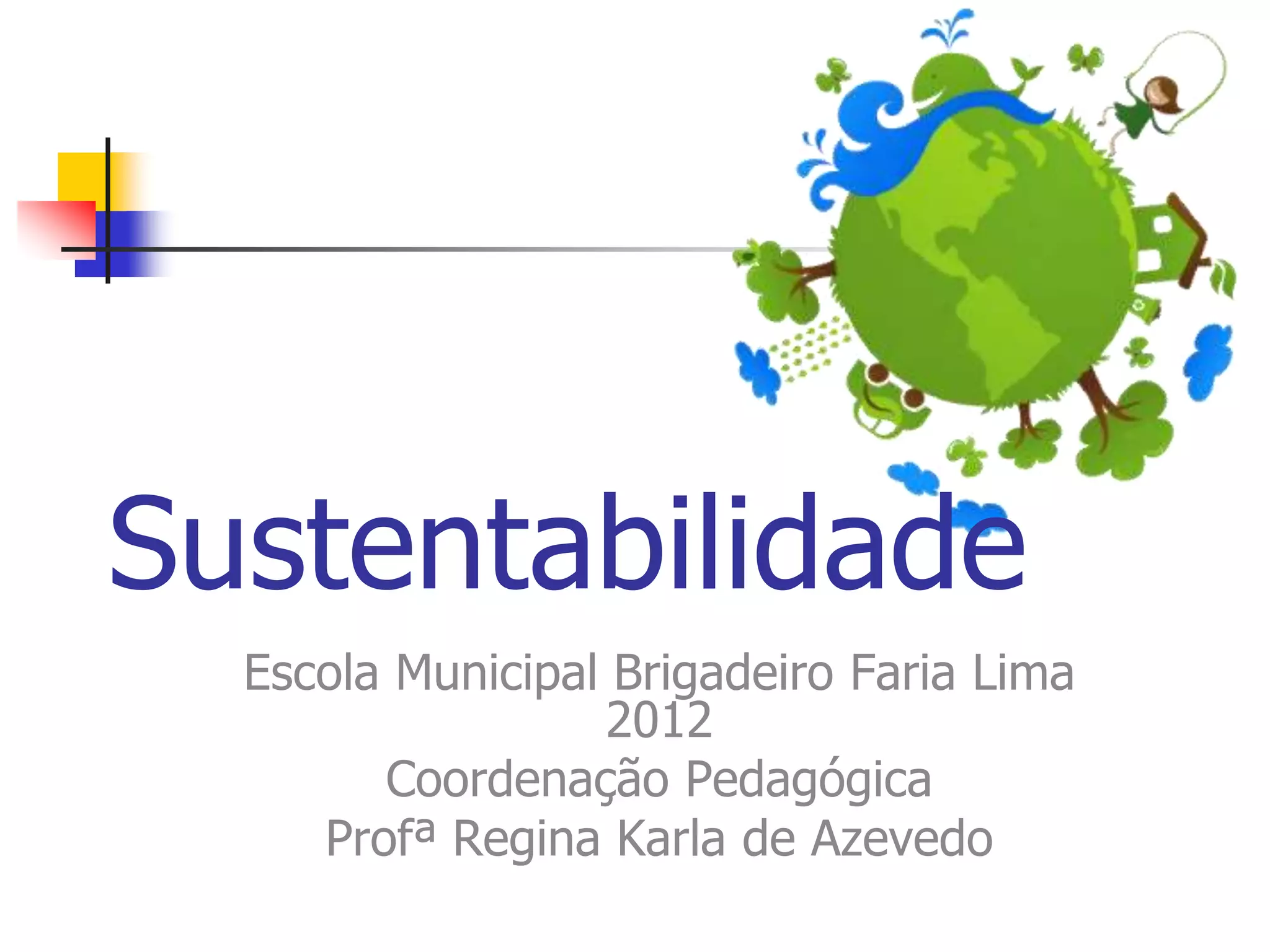 Este documento discute sustentabilidade e apresenta uma proposta de projeto interdisciplinar sobre o tema para ser implementado na Escola Municipal Brigadeiro Faria Lima. O projeto visa identificar problemas ambientais no bairro de Água Santa e sugerir soluções sustentáveis encontradas por estudantes em pesquisas online. Os alunos trabalharão em grupos multidisciplinares e apresentarão seus achados em uma feira.