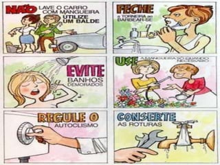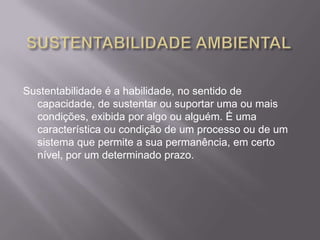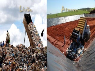 O documento discute a importância da sustentabilidade e fornece exemplos de como promovê-la. Ele aborda tópicos como desmatamento, lixões versus aterros sanitários, uso racional da água, e recomendações para adotar um estilo de vida mais sustentável.