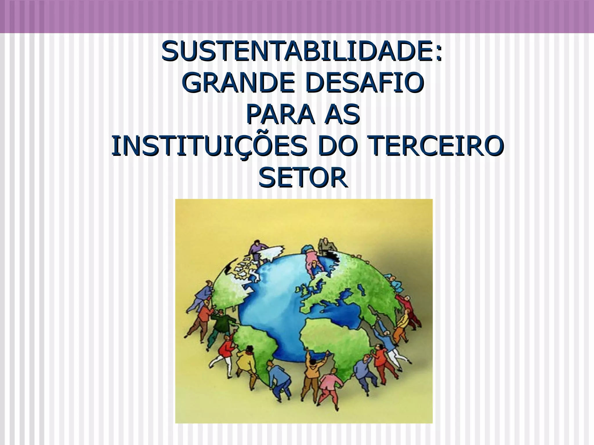 O documento discute os desafios da sustentabilidade para instituições do terceiro setor, incluindo a necessidade de gerar recursos próprios, melhorar a gestão e capacidade de produzir conhecimento. Também aborda a importância da parceria entre estado e sociedade civil e como promover a sustentabilidade econômica por meio da auto-sustentabilidade, que requer criatividade para obter novos recursos sem dependência.